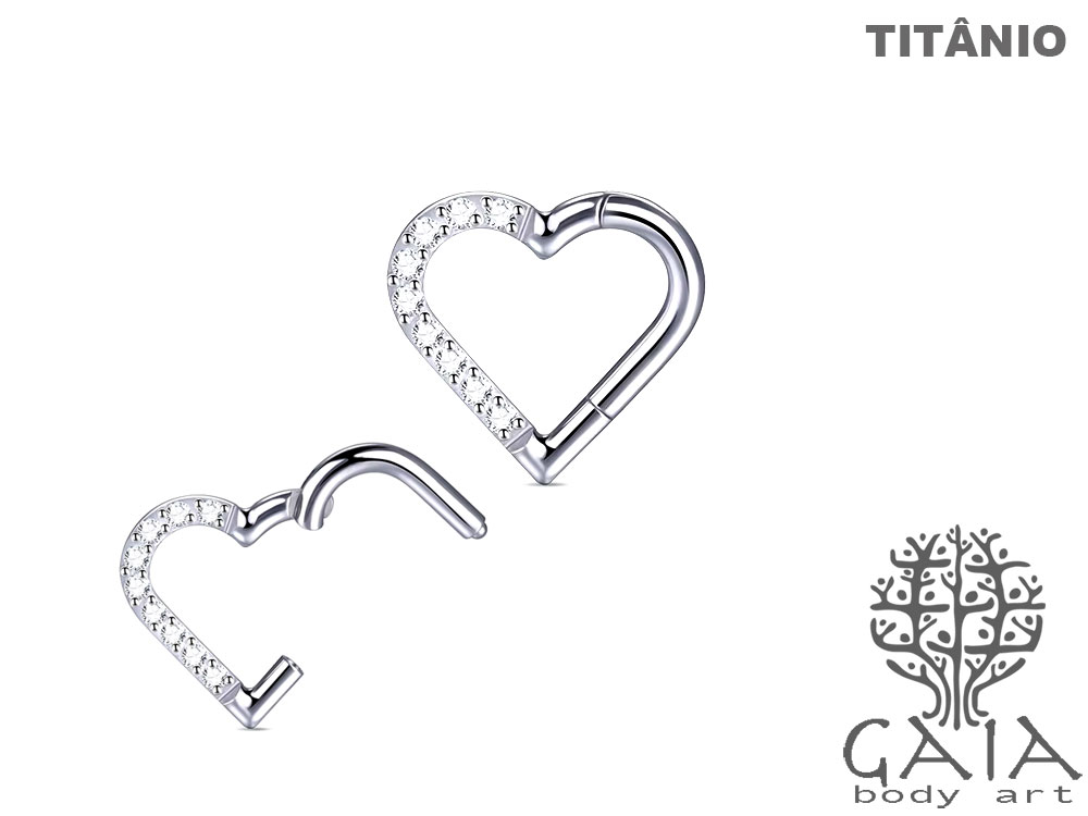 Piercing articulado clicker de titânio Coração cravejado de zircônias - Lado Direito